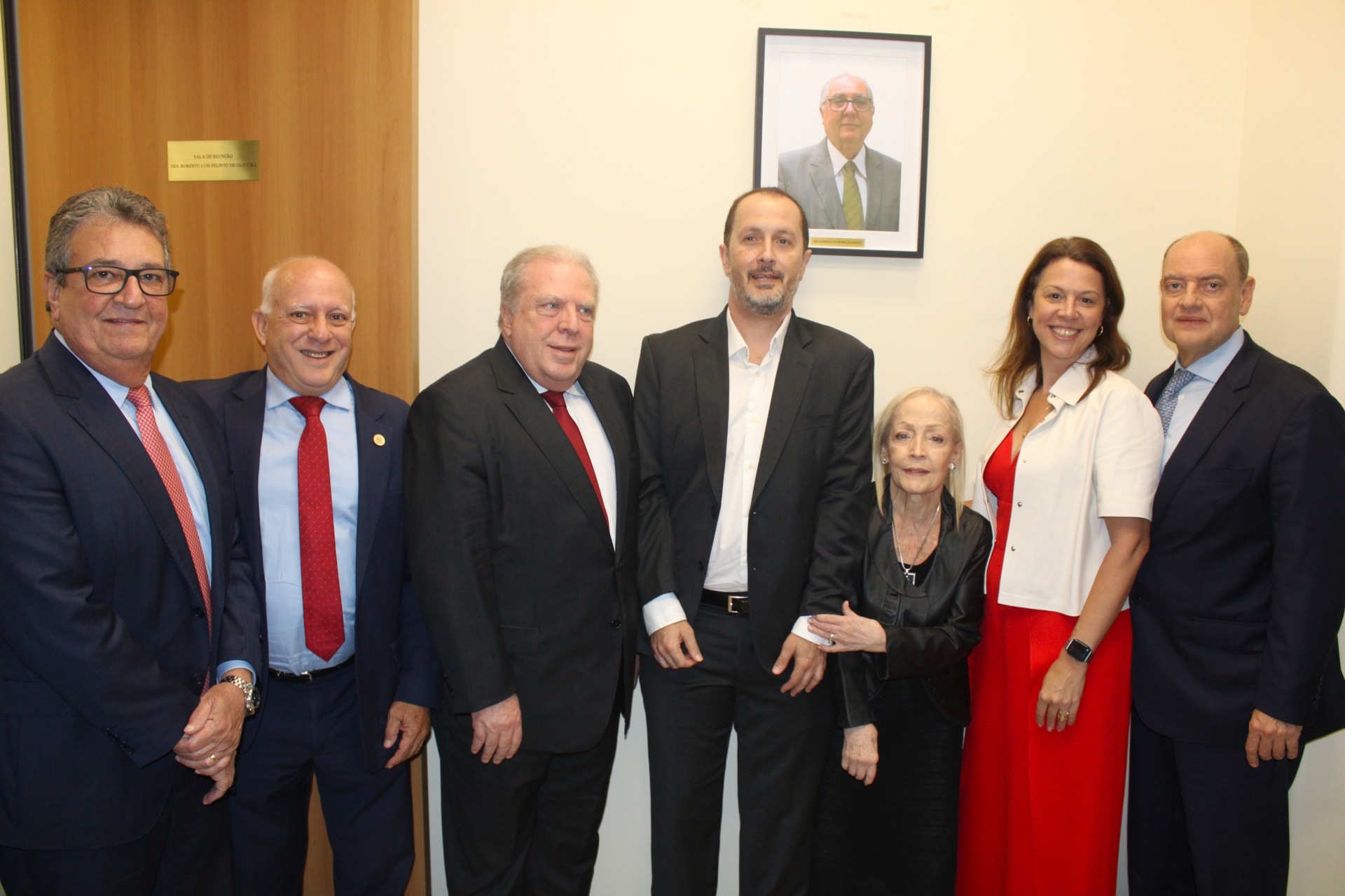 Nesta quarta-feira (17), o diretor-geral da Escola da Magistratura do Estado do Rio de Janeiro (EMERJ), desembargador Cláudio Luís Braga dell’Orto, participou da cerimônia de homenagem póstuma ao desembargador Roberto Luis Felinto de Oliveira. O evento, promovido pela Associação dos Magistrados do Estado do Rio de Janeiro (Amaerj), consistiu na nomeação de uma das salas da Sede Administrativa da instituição com o nome do homenageado. A solenidade ocorreu no Museu da Justiça. O desembargador Roberto Felinto, falecido em 1º de agosto de 2025, foi presidente da Amaerj no biênio 2008/2009 e desempenhou papel fundamental na criação da Escola Judiciária Eleitoral do Rio de Janeiro (EJE-RJ), atualmente denominada Escola Judiciária Eleitoral Desembargador Roberto Felinto.