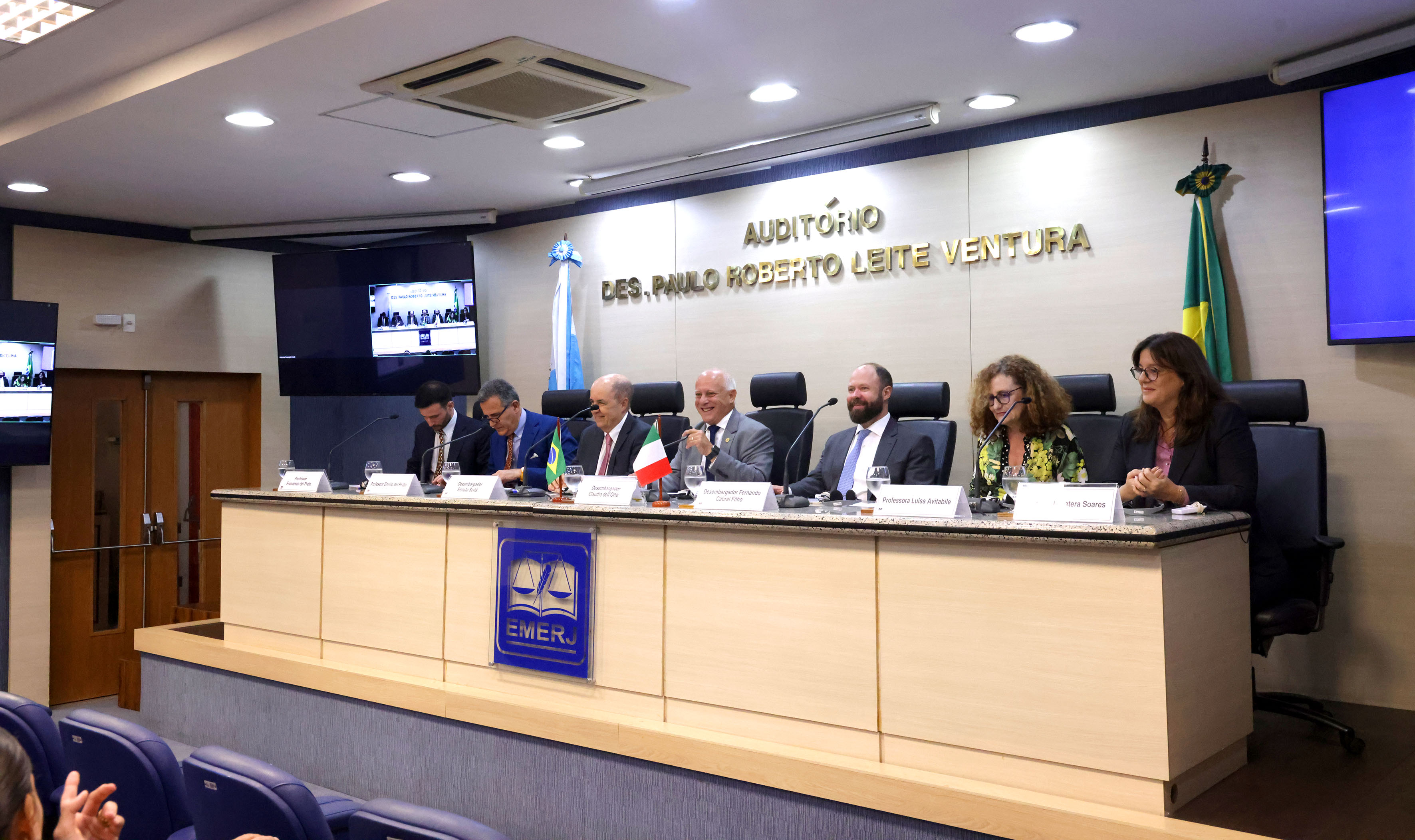 Nesta quarta-feira (21), a Escola da Magistratura do Estado do Rio de Janeiro (EMERJ) realizou mais uma etapa do Curso Oficial de Formação Inicial para Magistrados, destinado aos juízes recém-empossados pelo Tribunal de Justiça do Estado do Rio de Janeiro (TJRJ), após o L Concurso para Ingresso na Magistratura de Carreira do Estado do Rio de Janeiro. A programação contou com palestras ministradas por três professores italianos, que abordaram temas relacionados ao Direito Italiano.