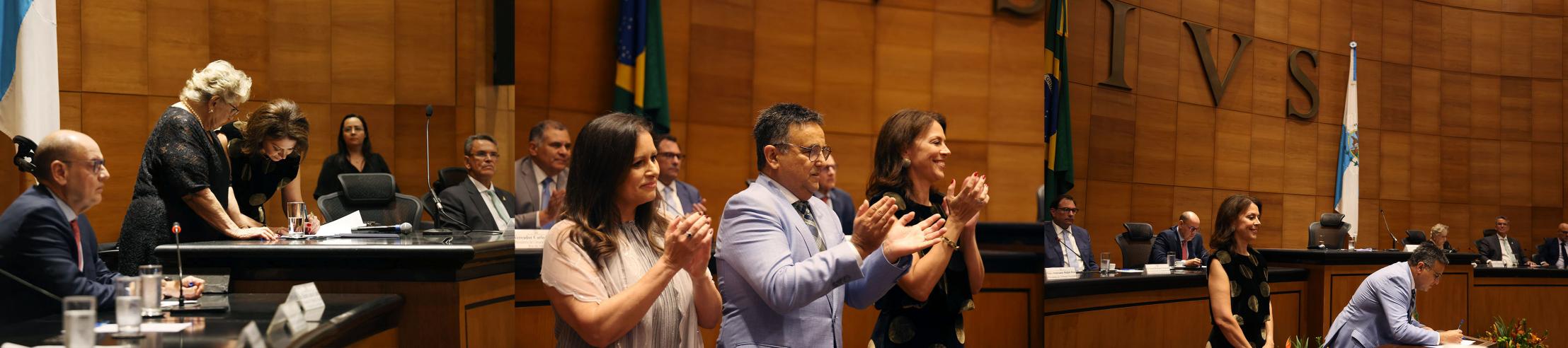 Na ocasião, a juíza Eunice Bitencourt Haddad, que preside a AMAERJ desde 2022, tomou posse como presidente; o desembargador Marco Aurélio Bezerra de Melo, diretor-geral da EMERJ no biênio 2024-2025, como primeiro vice-presidente; e a juíza Ana Beatriz Estrella, como segunda vice-presidente.