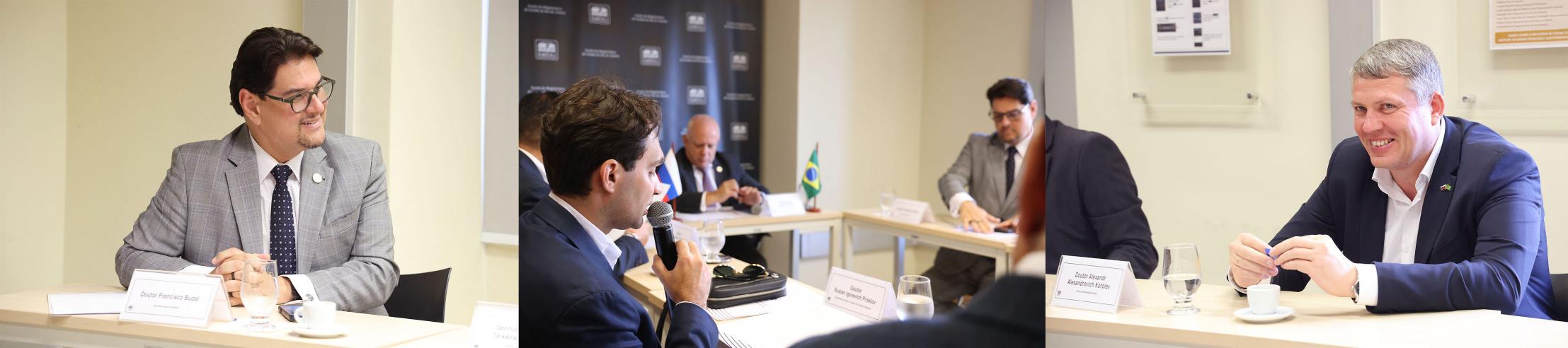 O reitor da Tyumen State University, Dr. Ivan Sergeevich Romanchuk, ressaltou: “Eu também sou jurista e temos muito interesse em promover uma parceria com o Brasil, porque sabemos que o Brasil tem uma grande experiência em vários assuntos jurídicos. Temos interesse na metodologia para a formação de futuros juízes. É muito interessante a possiblidade de organizar cursos lato sensu para os juízes russos, aqui na sua escola.”