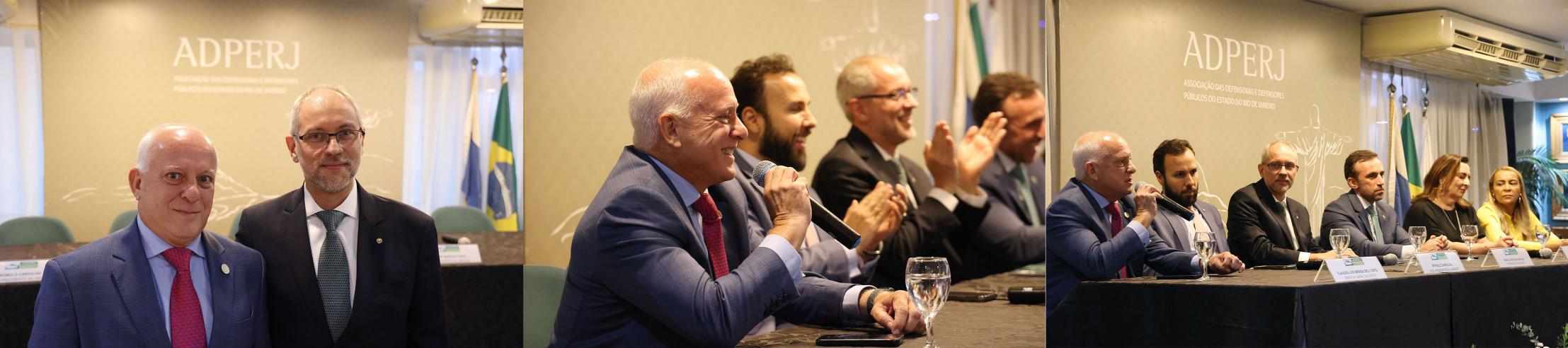 O defensor público-geral Paulo Vinicius Cozzolino Abrahão abriu o evento e destacou: “É sempre uma honra estar aqui, cumprimentando o novo presidente Dr. Rômulo Souza de Araújo. Nós sabemos que as casas associativas têm uma especial relevância para todas as classes. Esse engajamento da defensoria pública, dos colegas defensores, isso que traz para a gente uma alegria e a força diária.”