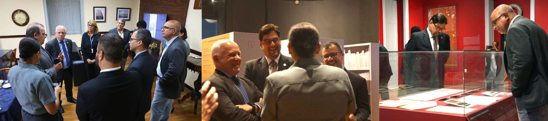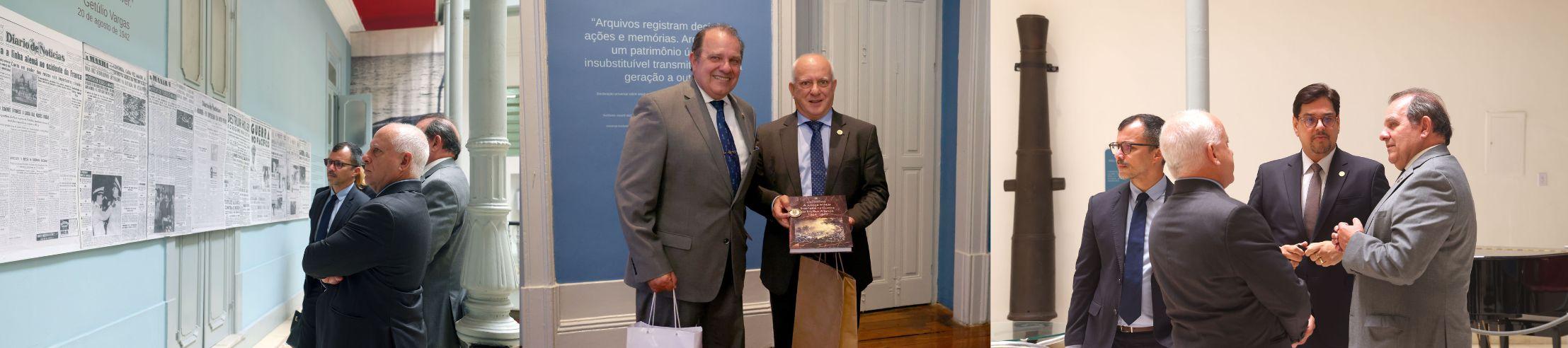Nesta terça-feira (3), o diretor-geral da EMERJ, desembargador Cláudio dell’Orto, realizou uma visita institucional ao Museu Naval da Marinha do Brasil e foi recepcionado pelo diretor da Diretoria do Patrimônio Histórico e Documentação da Marinha, vice-almirante Gilberto Santos Kerr; pela chefe do Departamento de Arquivos da Marinha, capitão de fragata Maria da Glória de Sant’Anna Silva; pelo assessor de Relações Institucionais, capitão de mar e guerra Fábio Quirino Bittencourt; e pela assessora cultural, capitão de corveta Renata da Rocha Pereira.
