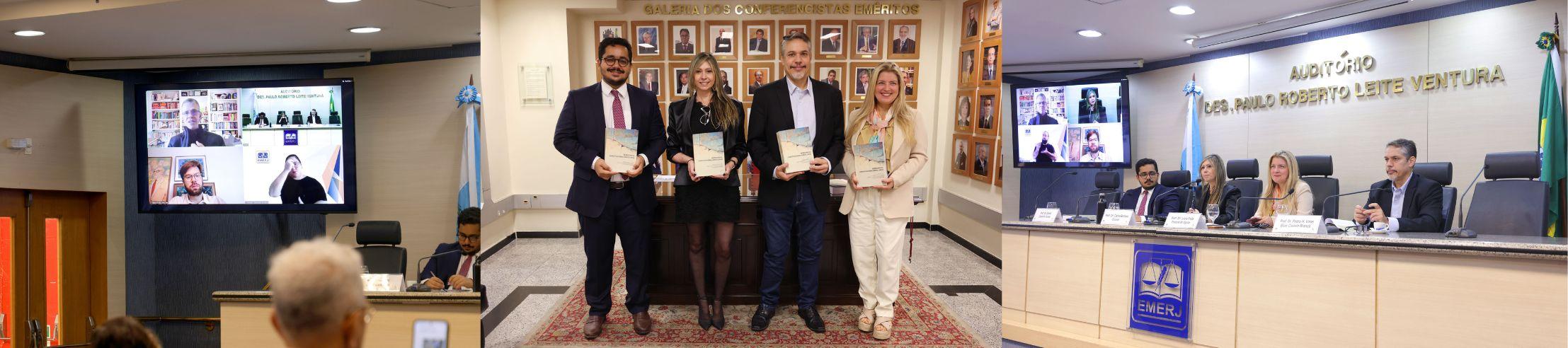 O professor associado do Instituto de Estudos Sociais e Políticos da Universidade do Estado do Rio de Janeiro (IESP/Uerj) e doutor em Ciência Política pelo Instituto Universitário de Pesquisas do Rio de Janeiro (IUPERJ), Pedro H. Villas Bôas Castelo Branco, palestrou sobre o tema e expôs: “Agradeço a todos que se envolveram nesse projeto que foi muito trabalhoso, extremamente longo e árduo, mas que hoje é concluído com muita alegria. Eu queria agradecer muito ao desembargador André Gustavo Corrêa de Andrade por sua contribuição nessa publicação, que foi imprescindível, e, sem a sua ajuda e empenho, esse trabalho não teria sido possível. Se trata de um livro de quase 900 páginas, com 30 capítulos, diversos autores, e é um projeto editorial muito difícil de ser executado. Eu agradeço de forma muito especial à minha parceira de pesquisa, Carina Barbosa Gouvea. Ela teve uma capacidade notável de articulação para realizar esse trabalho, porque não é fácil reunir autores estrangeiros e nacionais e conseguir que todos contribuam com suas pesquisas e capítulos num livro desse tamanho.”