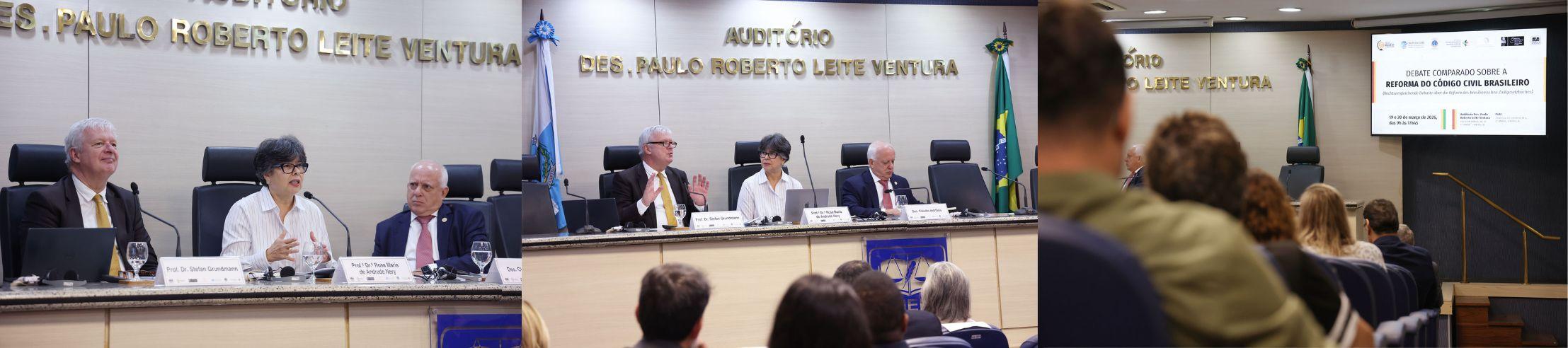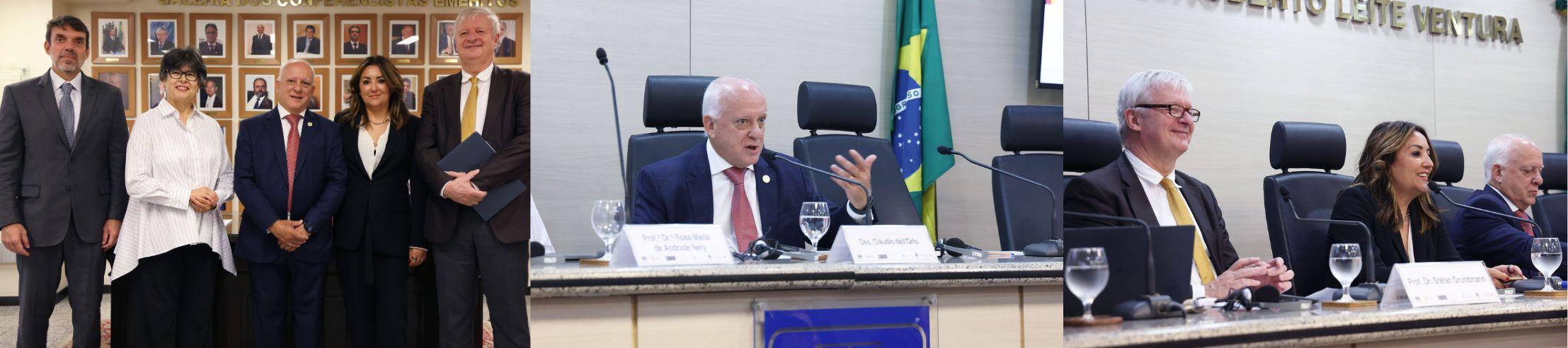 O evento aconteceu no Auditório Desembargador Paulo Roberto Leite Ventura, com transmissão via plataforma Zoom, tradução em Libras e tradução simultânea em alemão e português.