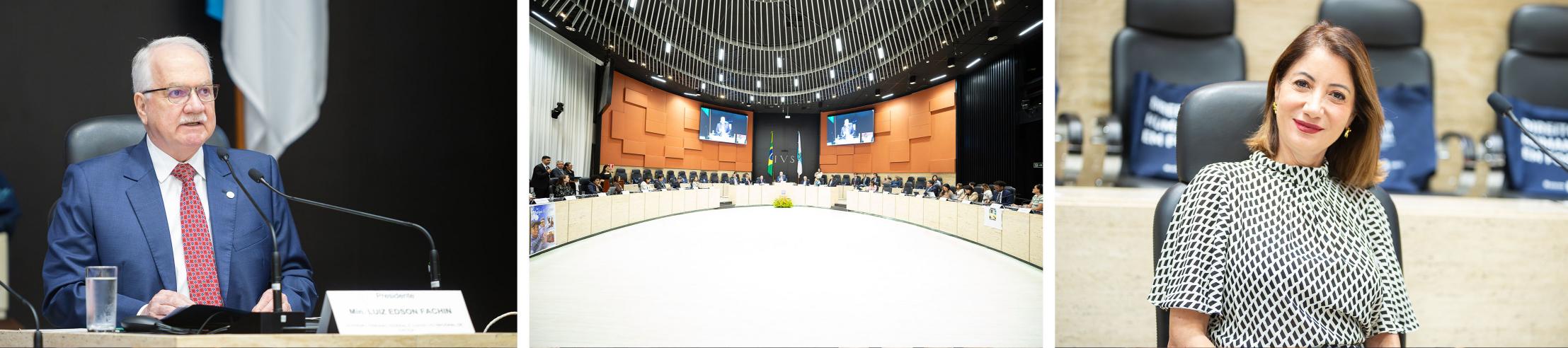 Nesta sexta-feira (10), representando a Escola da Magistratura do Estado do Rio de Janeiro (EMERJ), a conselheira consultiva, desembargadora Adriana Ramos de Mello, participou da reunião Atendimento a vítimas de violência de Estado no Sistema de Justiça, que contou com a presença do presidente do Supremo Tribunal Federal, ministro Edson Fachin. O encontro aconteceu no Tribunal de Justiça do Estado do Rio de Janeiro.